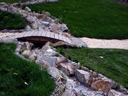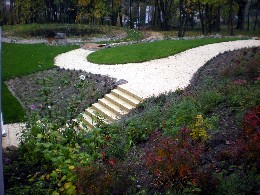 Lösung: es wurden 2 getrennte Bereiche mit Wassergärten geschaffen, dazwischen immer wieder kleine Trockenmauern und Treppen, um den hang zu erschließen. Bepflanzt wurde vorwiegend mit heimischen Pflanzen, nur im zentralen Eingangsbereich war ein „repräsentatives“ Staudenbeet gewünscht.