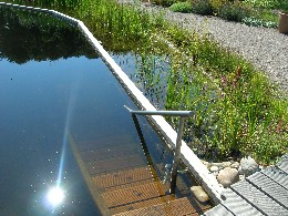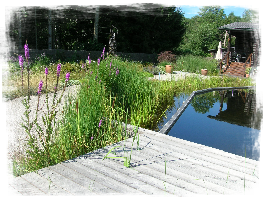 Aufgabenstellung: Da der Bauherr sehr sportlich ist, sollte der Schwimmteich möglichst groß sein. Die Bauherrin wiederum kommt aus der Modebranche, harmonische Gestaltung und Einfügung in den Gesamtgarten waren ihr ein wesentliches Anliegen.