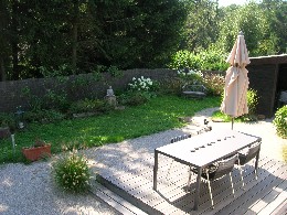 Beschreibung: großes, sehr offenes, sonniges Grundstück mit einem Wochenendhaus, das im Sommer aber dauernd bewohnt wird.