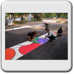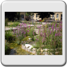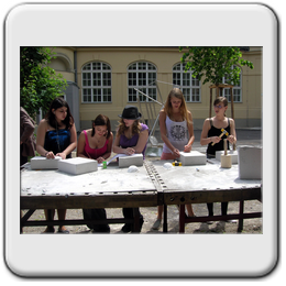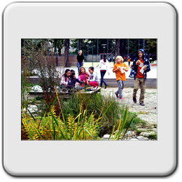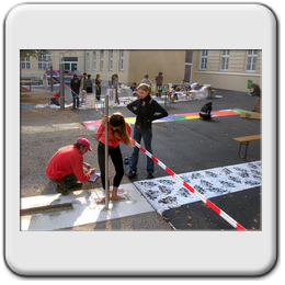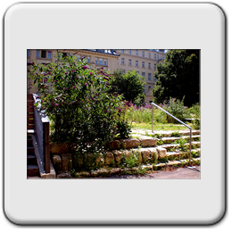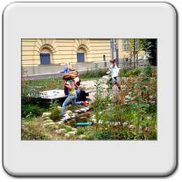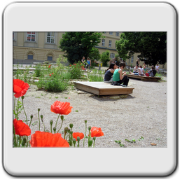 Ateliergarten: bietet Raum für künstlerische Darstellung der SchülerInnen und spiegelt die verschiedenen Schulschwerpunkte, wie Ballett.